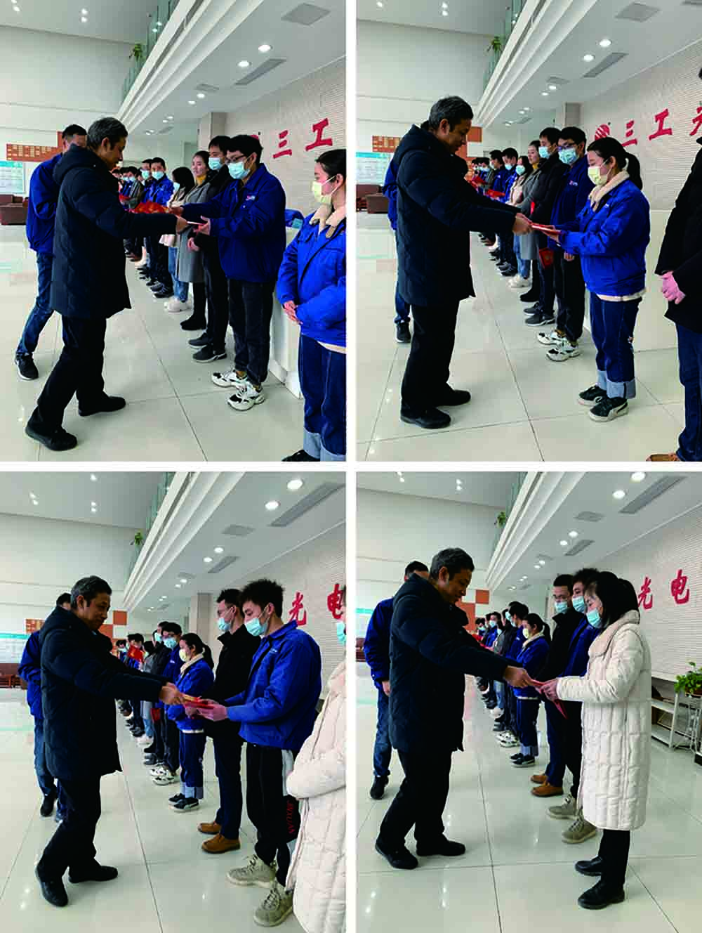 2021年2月4日,武漢三工光電產(chǎn)業(yè)集團(tuán)舉辦了2020年度優(yōu)秀員工表彰大會(huì),三工集團(tuán)總經(jīng)理何總、三工激光總經(jīng)理熊總、三工國際總經(jīng)理曾總、三工精密總經(jīng)理程總,三工光電總經(jīng)理助理胡總參加了本次表彰大會(huì),何總發(fā)表了講話,感謝大家2020年的付出,并對(duì)2021年做出了期許,最后親自為各子公司的優(yōu)秀員工頒發(fā)證書及獎(jiǎng)金。