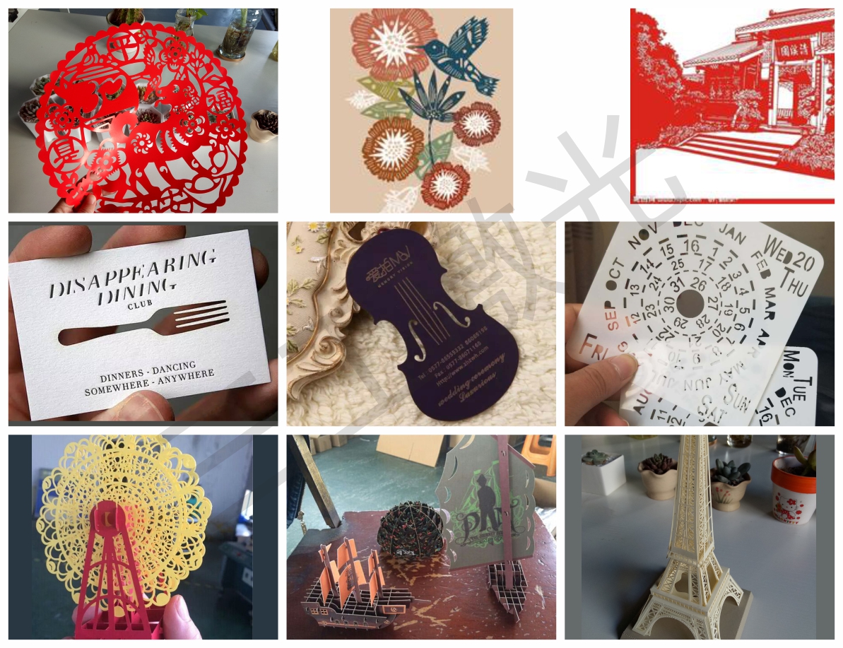 激光鏤空機(jī)不同的行業(yè)應(yīng)用有著不同的效果,現(xiàn)在許多DIY工坊都已經(jīng)把激光鏤空機(jī)引入到他們的生產(chǎn)當(dāng)中,制作不同有趣的設(shè)計(jì)。武漢三工激光打標(biāo)機(jī)在制作鏤空畫冊(cè)、紅包、賀卡、高端邀請(qǐng)函、糖盒、對(duì)聯(lián)剪紙年畫、紙雕燈、3D便簽紙等方面有很大的優(yōu)勢(shì),能夠根據(jù)客戶的要求高效高質(zhì)的完成訂單。