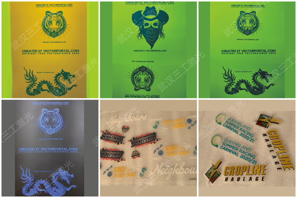 刻字膜須和激光打標機及燙畫機配套使用,非常方便,還可套色轉印,可回粘,以增加承應物的豐富性和變化性,且不受限于布料的顏色,只要是布料材質皆可轉印,轉印后具有優(yōu)越的洗水色牢度及膠粘牢度。該產品廣泛應用于單色圖形、球隊制服的隊標、運動號碼、標志、廣告、海報、公司logo等。