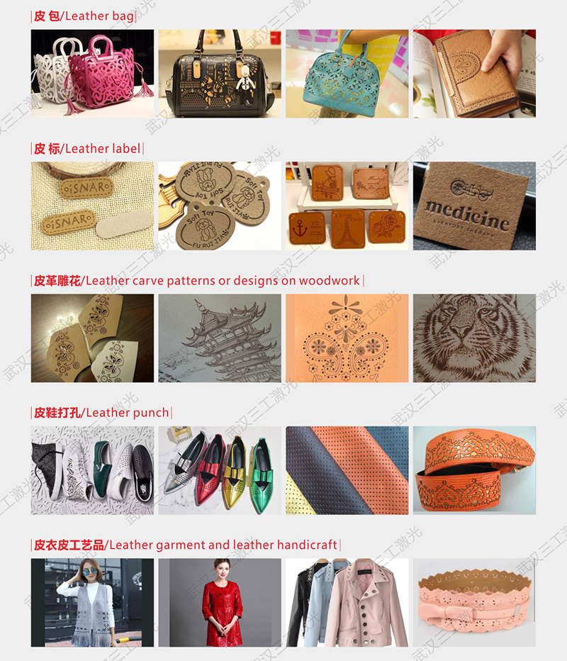 該設(shè)備適用于皮革制品、服裝面料、木制品、工藝禮品、包裝等絕大部分非金屬材料的雕刻、切割、鏤空制作。